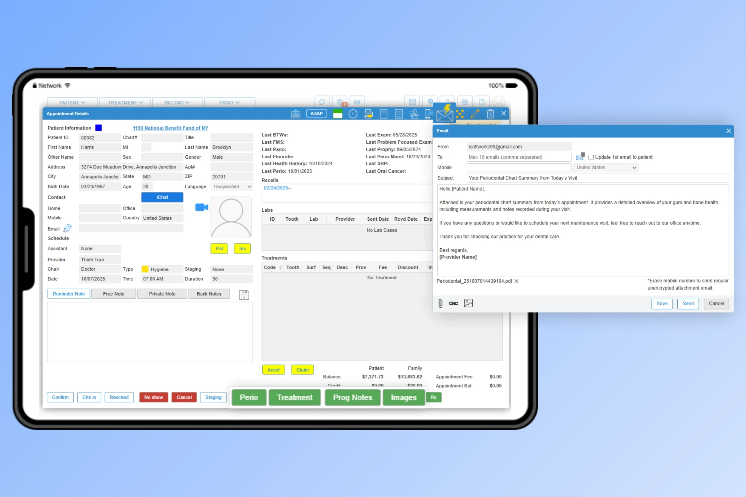 Access and edit Perio charts anywhere, from any device. iDentalSoft’s cloud platform provides real-time updates, automatic backups, and secure HIPAA-compliant protection for all patient data.