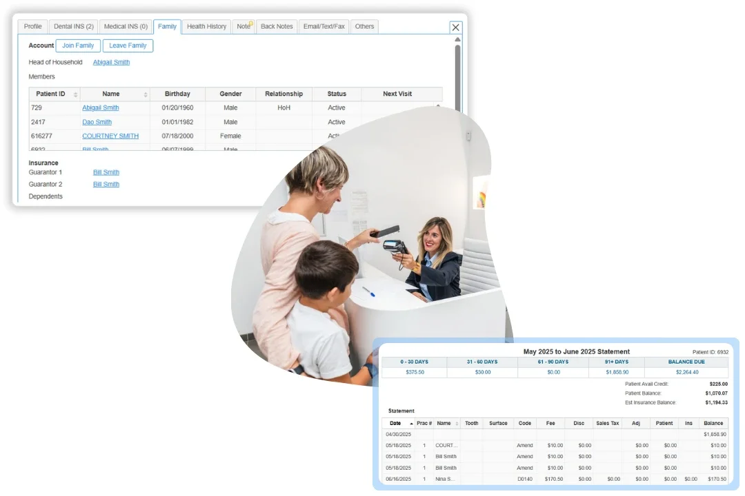 Accept one parent payment and apply it across multiple balances, while parents enjoy secure online access to view and pay all family charges in one patient portal.